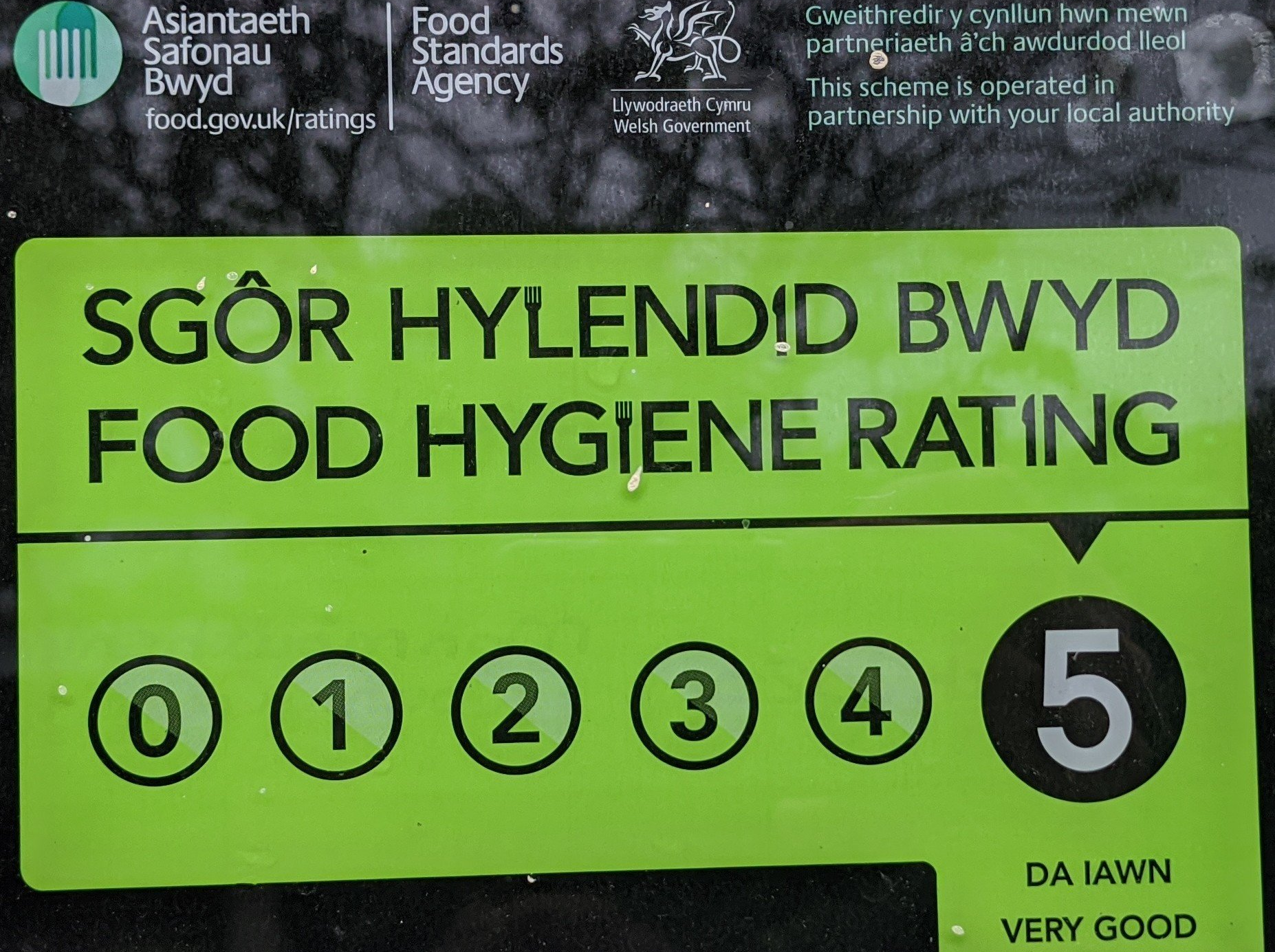 We're very proud of our 5 star food safety rating, issued by our local authority.